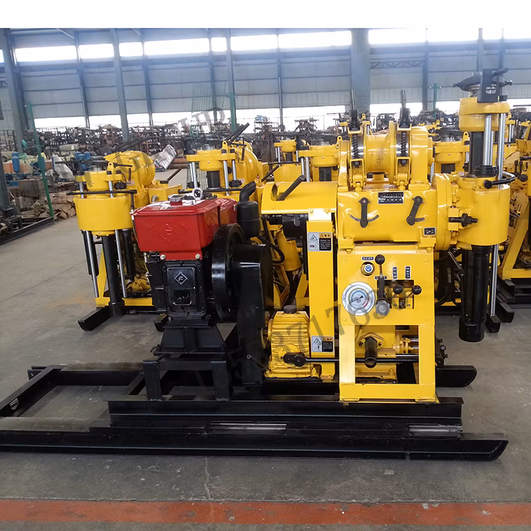 La piattaforma di produzione portatile del pozzo d'acqua HW-230 fornita di pompa di fango BW-160 e di motore diesel 22HP, profondità Drilling massima può Essere 160m con il diametro di apertura di 75-300mm, il rimorchio, il cingolo ed i telai del trattore per la scelta